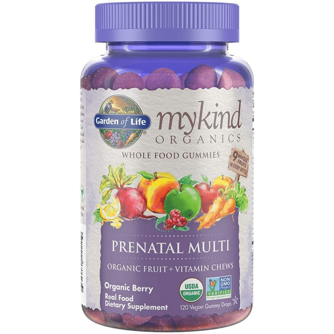 - Garden of Life Organics Prenatal Gummy Vitamins. (6,734 ratings on Amazon) "Organic gummy vitamins for women, with 9 organic whole fruits in every bottle and has targeted ingredients to support the needs of mom and baby, including 600 micrograms of folate and 800 IU of Vegan D3 vitamin."