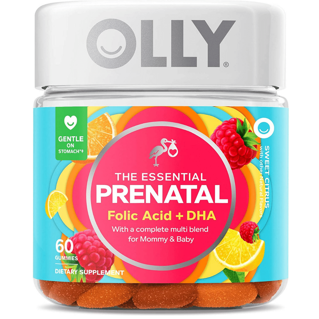 - OLLY Prenatal Multivitamin Gummy. (7,399 ratings on Amazon) "Whether it’s before, during, or after your pregnancy, this nurturing blend provides essential nutrients plus Omega-3 DHA to keep you healthy and energized and deliver the good stuff to your precious cargo."