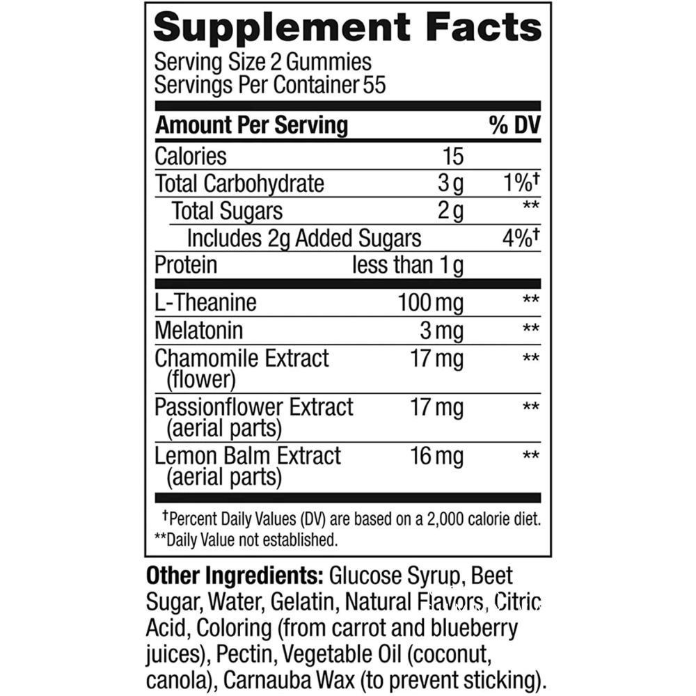 - OLLY SLEEP GUMMIES with L-Theanine and Botanicals, help boost your natural sleep hormone, mellow your mind and calm your senses so you can relax and enjoy restful sleep."