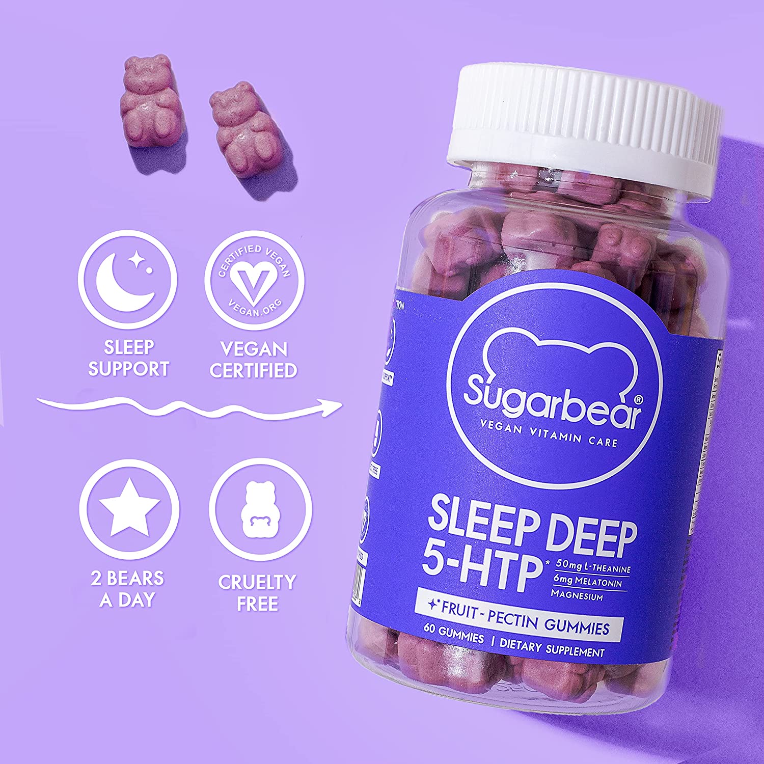 SugarBear Sleep Gummies are vegan, soy-free, gluten-free, and cruelty-free gummy vitamins that you can enjoy!