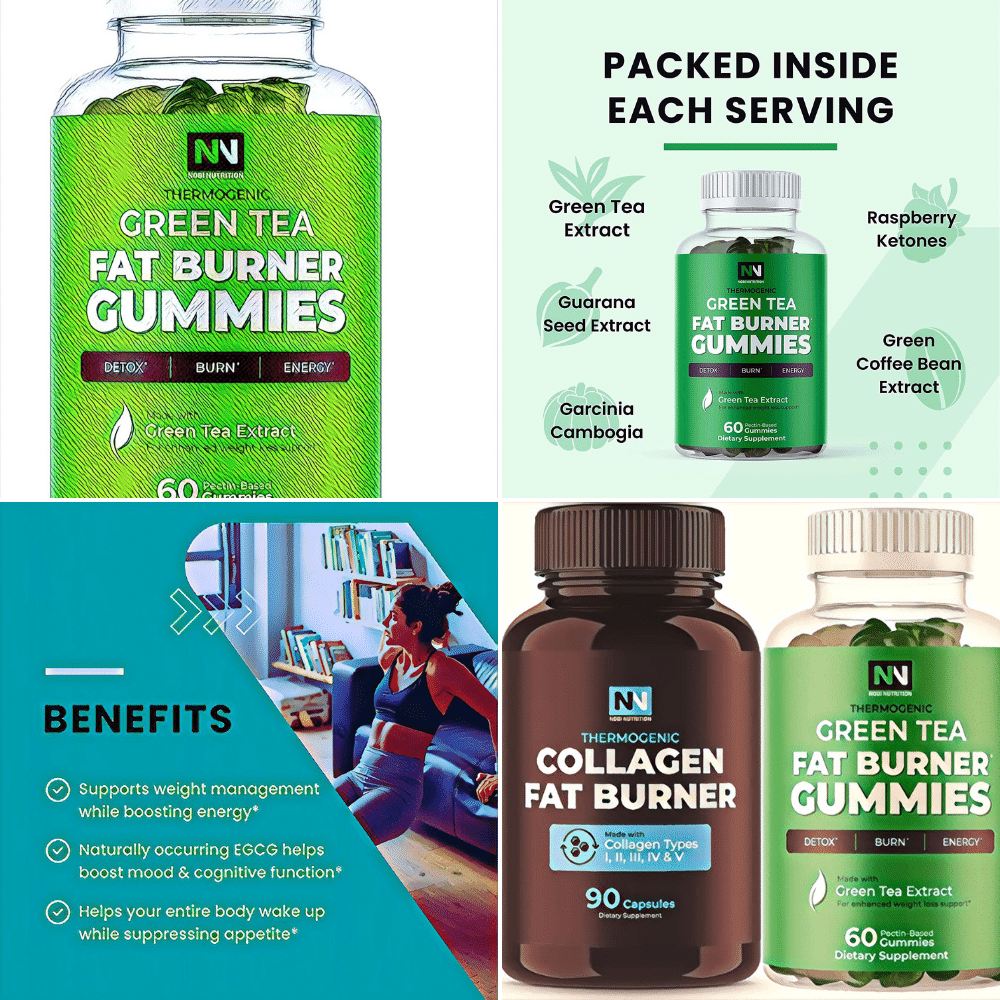 - Extra Strength Green Tea Fat Burner Gummies - Weight Loss Supplement & Collagen Thermogenic Fat Burner Appetite Suppressant & Fat Burners for Women & Fat Burners for Men
