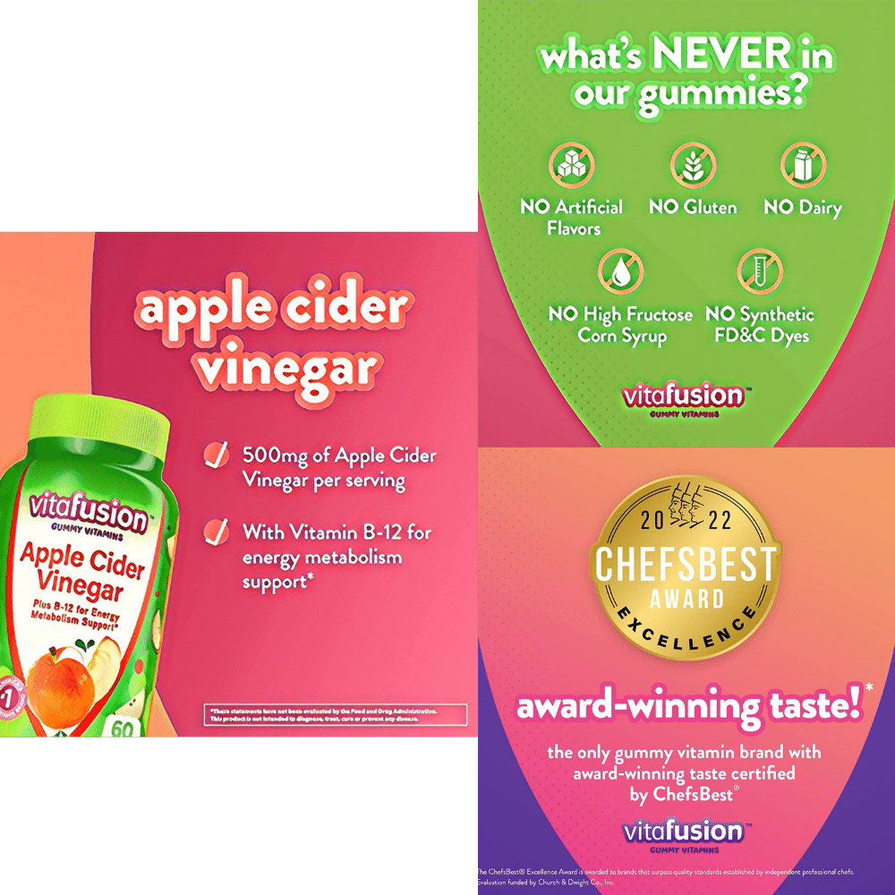 - 500mg Apple Cider Vinegar per serving plus B Vitamins, 60ct (30-day supply), Natural Apple Cider Flavor from America’s Number One Gummy Vitamin Brand